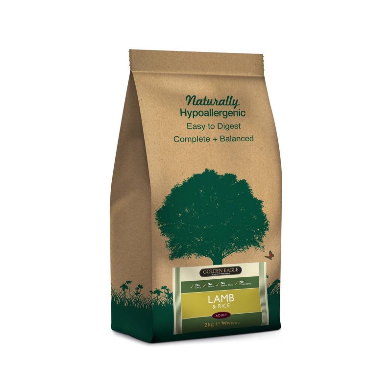 Golden Eagle Naturally Lamb & Rice on täisväärtuslik koeratoit. Sisaldab 34% maitsvat lambaliha. Lisaks suurepärastele valkudele sisaldab lammas rasvu, mis on kasulikud koera nahale ja karvale. Inimtoiduks sobiv kvaliteetne talleliha on väga hästi seeditav ja äärmiselt maitsev. Hüpoallergeenne koeratoit sobib sageli ka eriti tundlike mao ja allergiliste sümptomitega koertele.