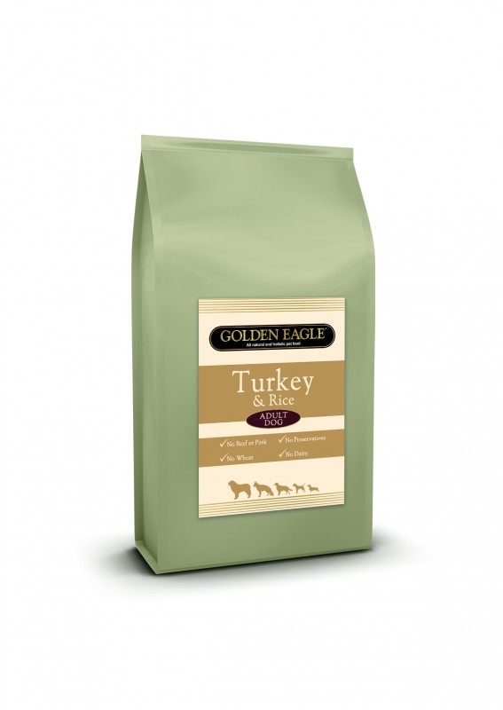 Golden Eagle Turkey & Rice on täisväärtuslik koeratoit, mis sisaldab kõiki toitaineid, mida teie koer vajab. Boonusena on see toode hüpoallergeeniliselt valmistatud ilma veiseliha, sealiha, nisu, nisugluteenita, piimatoodete, munade ja sojata. Hoolikalt valitud toorained nagu kvaliteetsed lamba valgud, riisi ja odra kui süsivesikute allikad on suurepärased toorained toidutundlikkuse või allergia ravis. Soovitatav on koera toita selle toiduga 4–8 nädalat ja kui allergilised sümptomid kaovad, siis jätkata sama toiduga toitmist.